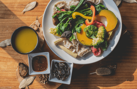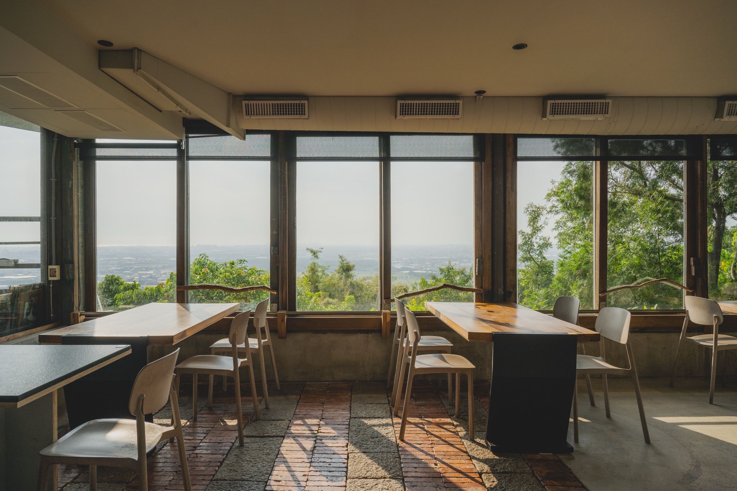 吃到一半抬起頭,整面窗外就是山下的平原。