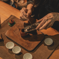粉紅色的天還沒完全走,山下的燈已經亮了。上來找一個位置,慢慢泡一壺茶。